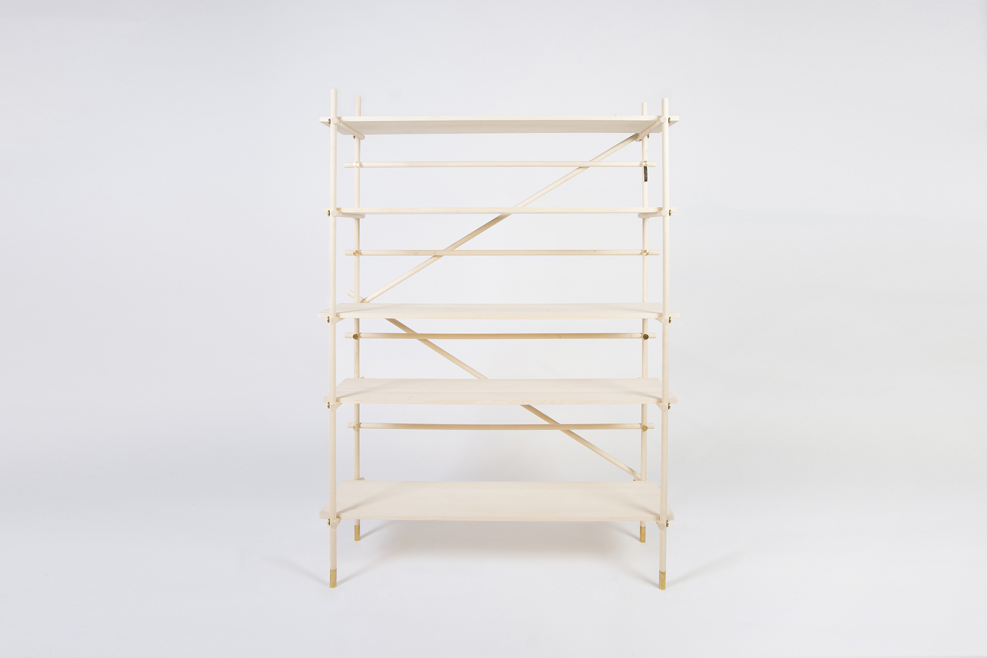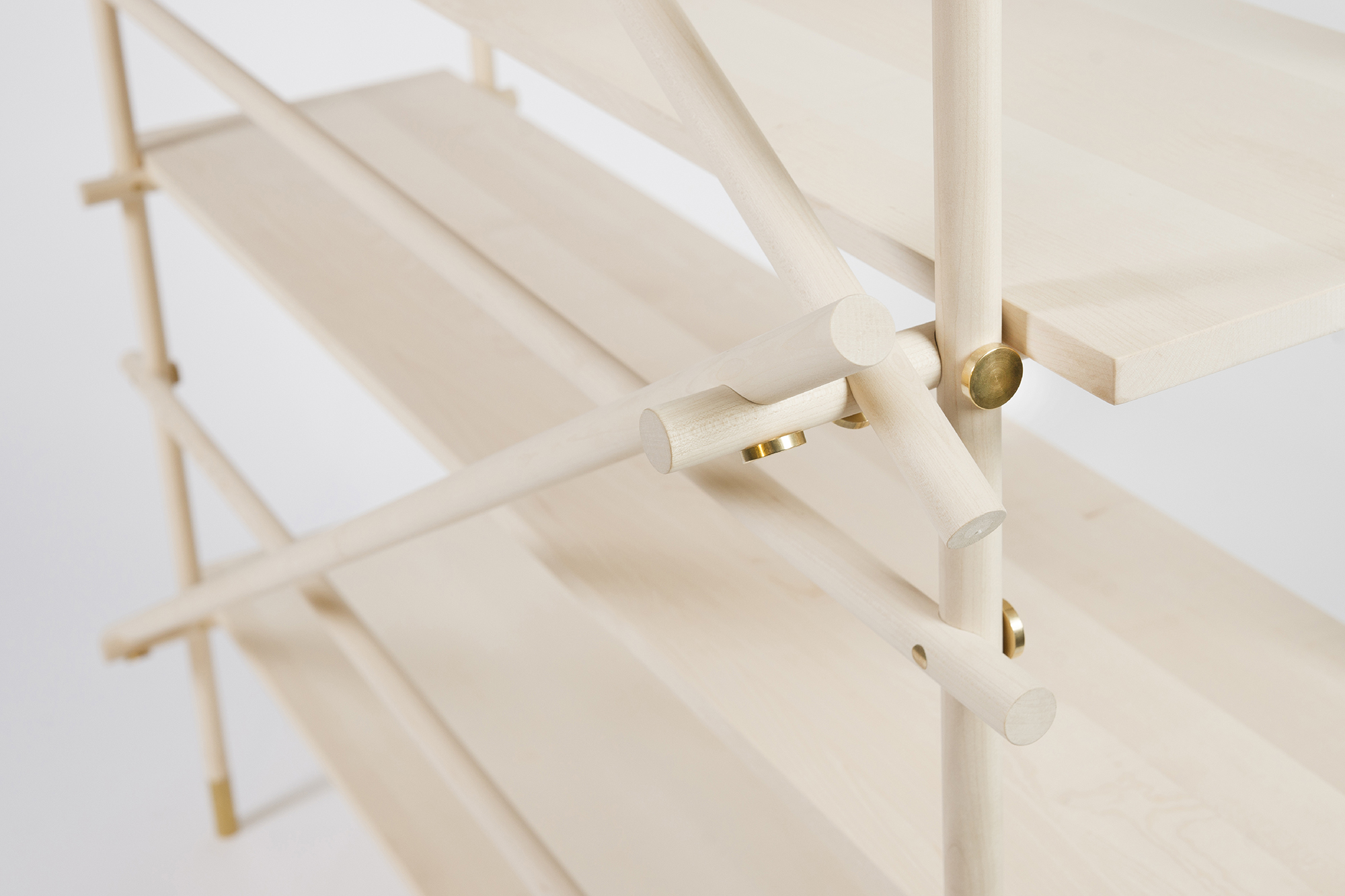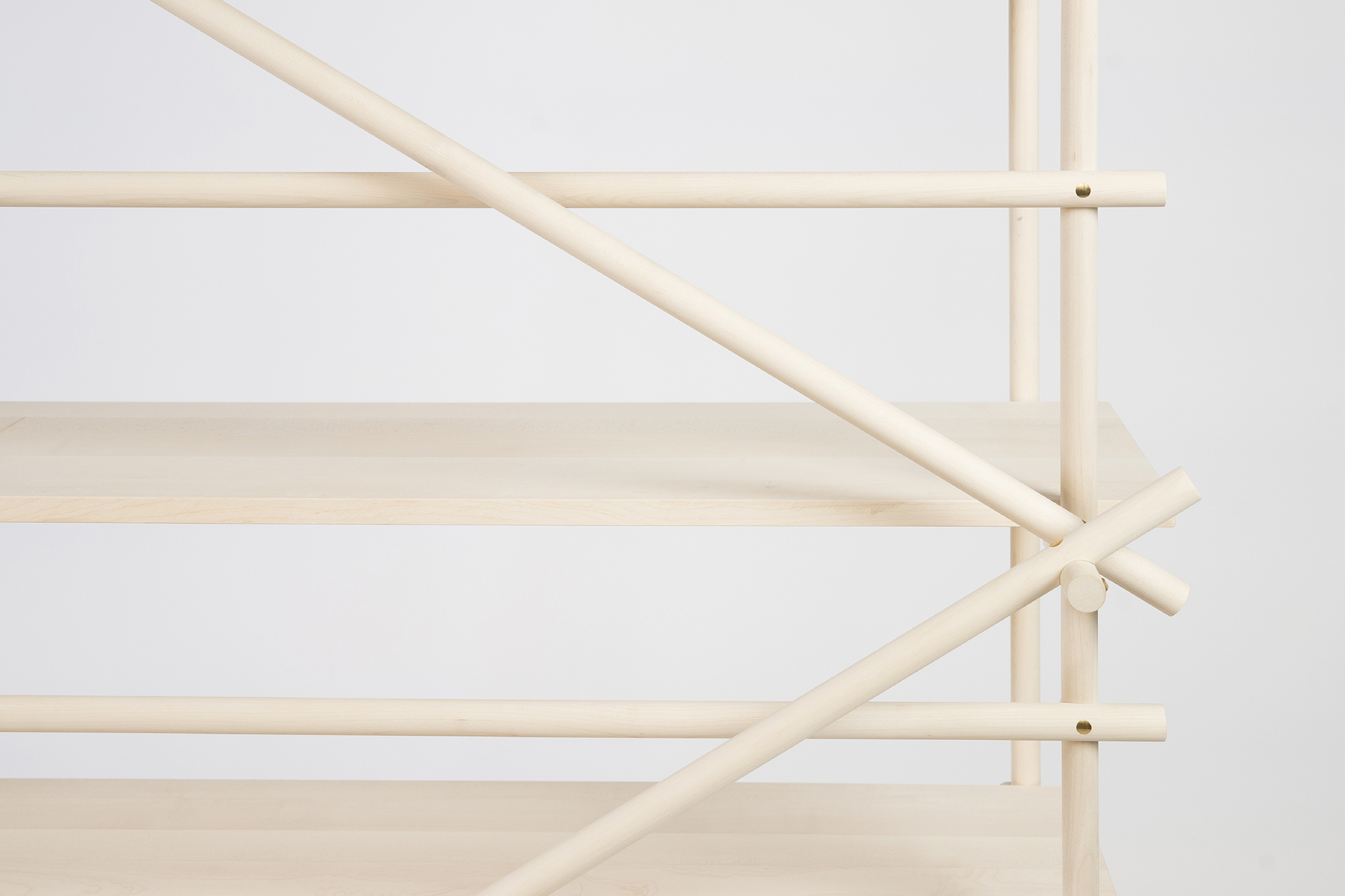 supports books, and sticks to our bodies, depending on its purposes.On the other hand, USEFUL ARBEITSLOSER (JOBLESS) goes on its own way. Lee completes the furniture through a process of making wooden poles stand and fixing wood boards with brass joints, which becomes a miniatured form of a scaffold.At a glance, it seems similar to DIY furniture, but it is apparently different. The process of assembling and its result as a final product are not so much different to existing furniture. But the main agent of the assembly is replaced. Of course when the main agent becomes users of homes and offices instead of factory workers, DIY furniture can look slightly different from existing furniture. In other words, skilled labor can create aesthetic space in which one is able to experiment on the possibility of the process of assembling furniture and its completed form, even if the difference is not significant. However, DIY furniture can go only this far. A chair is still a chair, and a desk is still a desk, and a bookshelf is still a bookshelf.