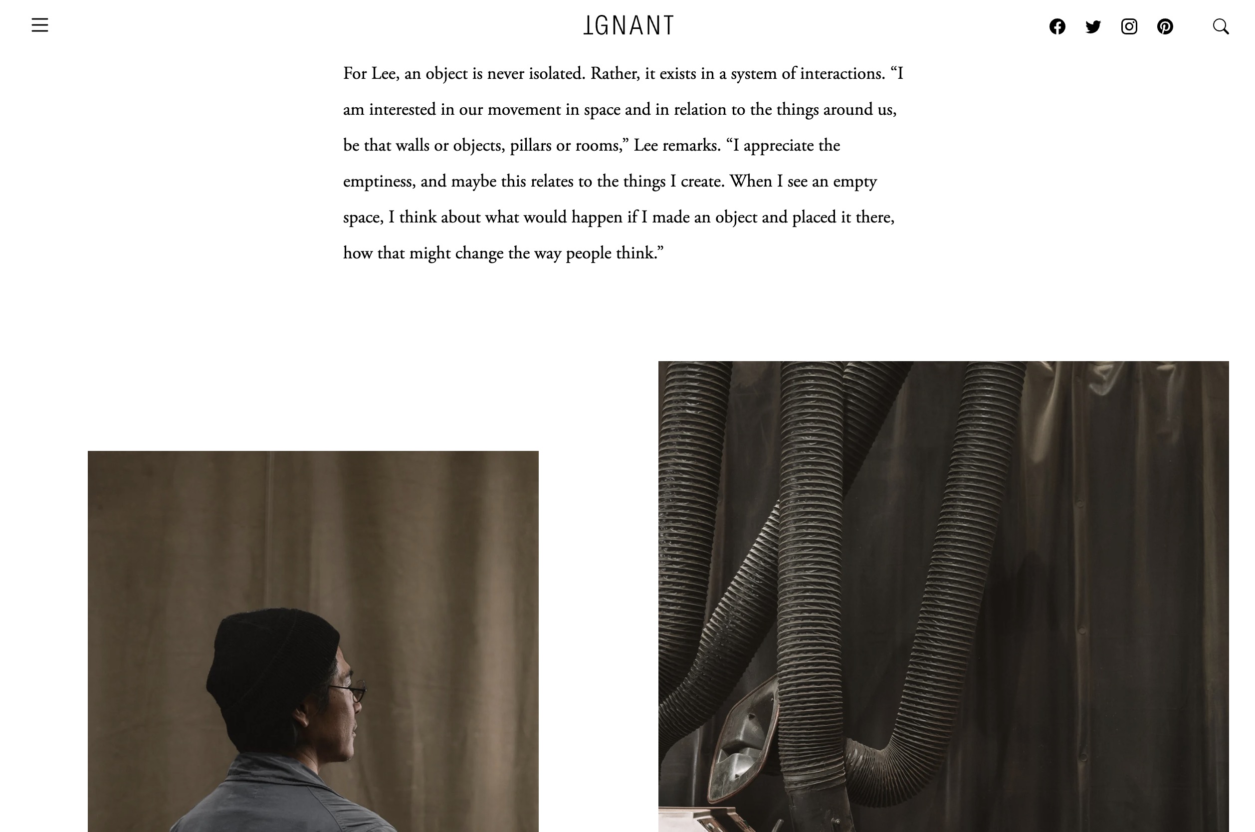 IGNANT is a Berlin-based online magazine and creative platform focused on art, design, architecture, photography, travel, and contemporary visual culture. It began in 2007 and became known for its very distinctive editorial language: minimal, highly curated, image-led, and aesthetically refined.
